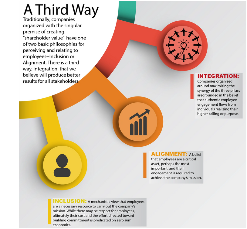 Naturally, the greater the strength of each pillar, and the greater the synergy of all three, the greater the potential of your organization. Traditional approaches to organizational transformation predicated solely on creating “shareholder value” sub-optimize your organization’s prospects, often looking past the importance and value of the pillars of purpose and people.